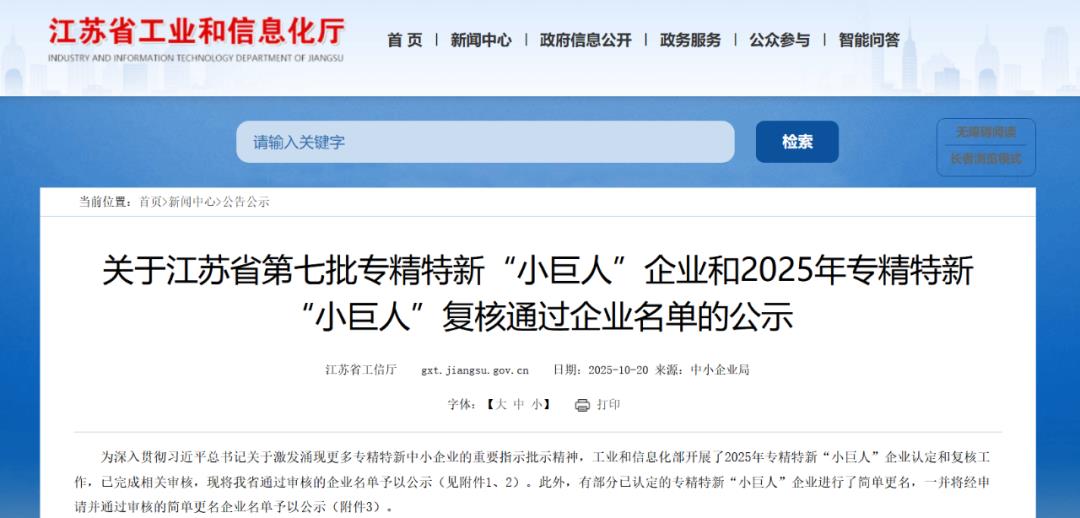 近日,江苏省工业和信息化厅公示了江苏省第七批专精特新“小巨人”企业及2025年复核通过企业名单。邳州市共有3家企业新入选,另有4家企业通过复核。