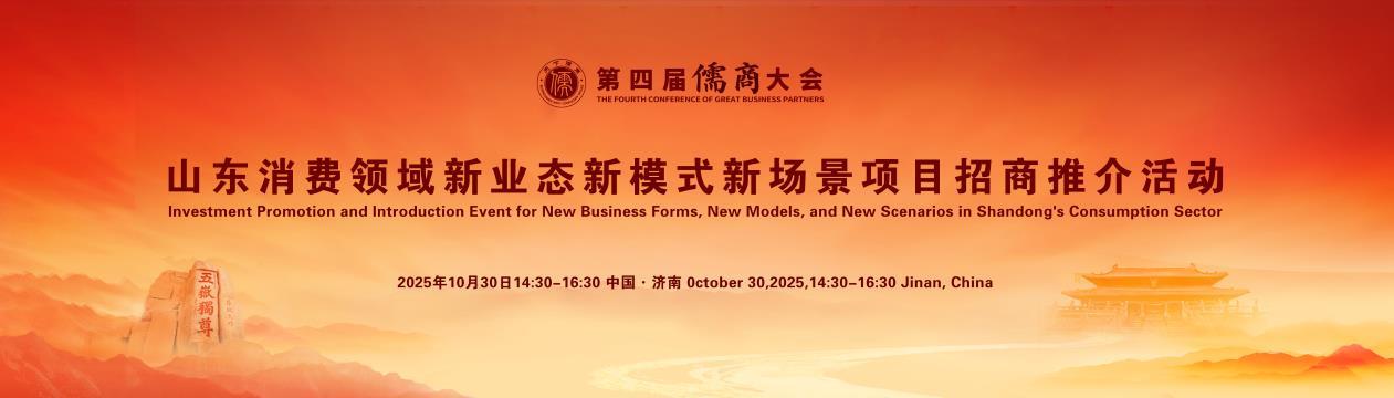 由山东省商务厅举办的山东消费领域新业态新模式新场景项目招商推介活动,定于2025年10月30日14:30在山东大厦金色大厅A厅(西厅)举行。