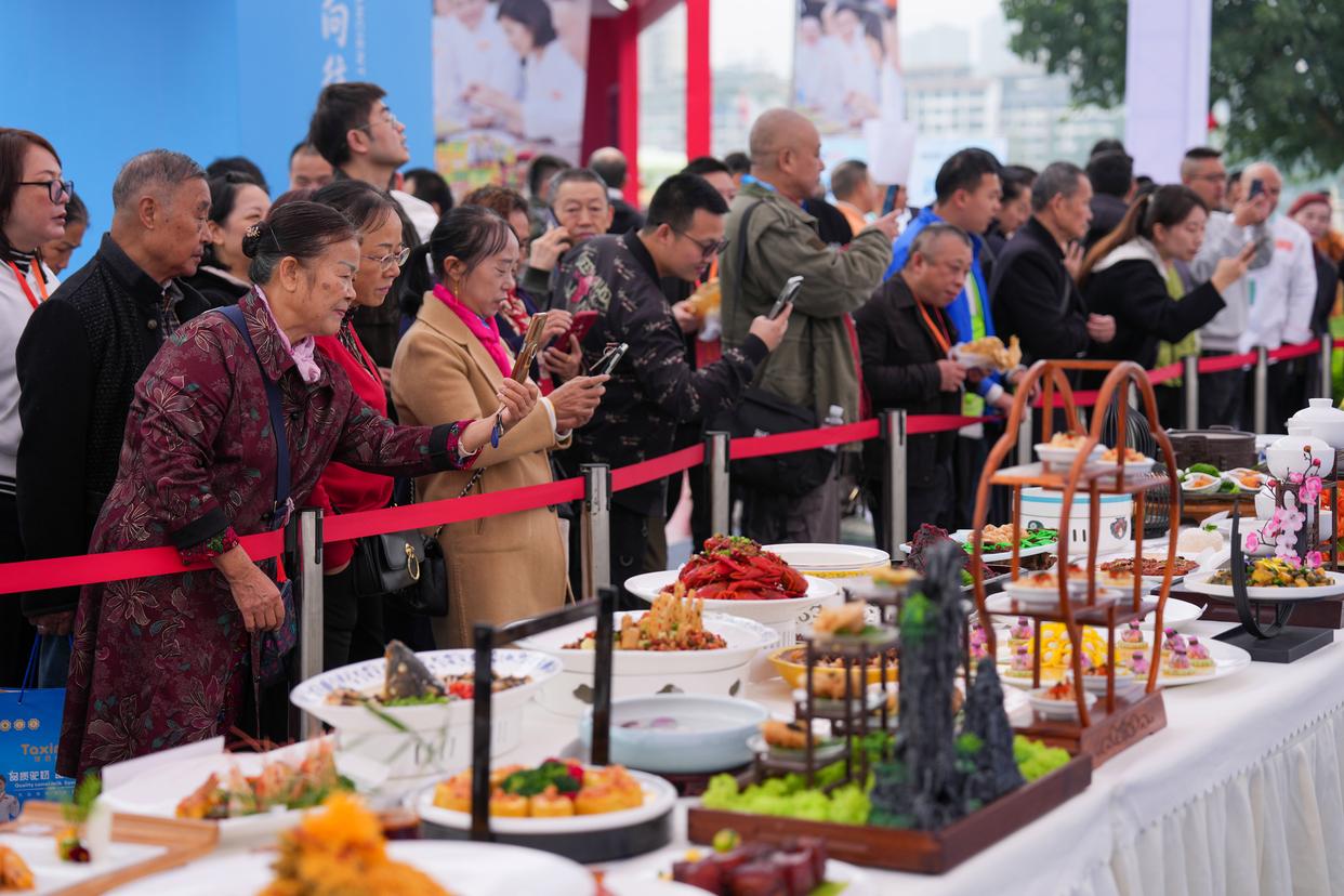 11月1日,市民在2025世界川菜烹饪技能大赛现场观看参赛作品。新华社记者 胥冰洁 摄