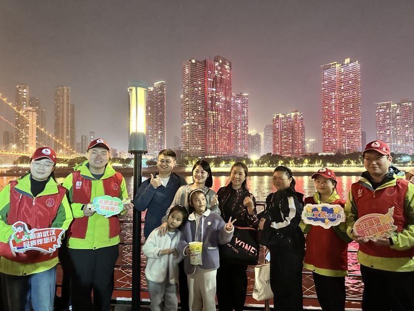 当旅程结束、游船缓缓靠岸,游客们带着满足的笑容离船时,不少人还特意走到志愿者身边道声感谢。此次文旅志愿者服务活动,不仅用细致服务让两江夜游的体验更上一层楼,更像一座桥梁,将武汉的“志愿者之城”公益底色与“文化之都”历史厚度,悄悄传递到每一位游客心中,为武汉文旅融合发展注入了暖暖的力量。