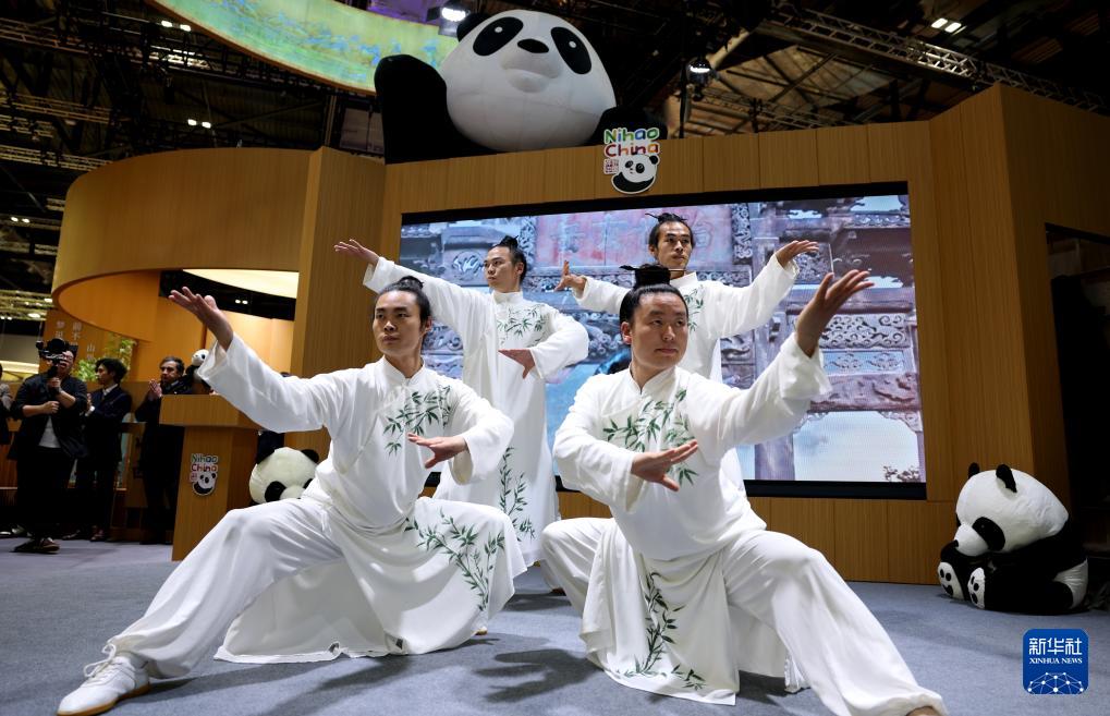 本届展会中国展区以“中国旅游:创新融合 绿色发展”为主题,总面积达400多平方米,创历届新高。展区设计融合了一系列有代表性的中国文化元素,如熊猫形象、民族服饰、经典古诗词等,以兼具环保理念与文化质感的竹材打造出一条沉浸式文化长廊,多维度展示13个参展省、自治区、直辖市的文旅特色。
