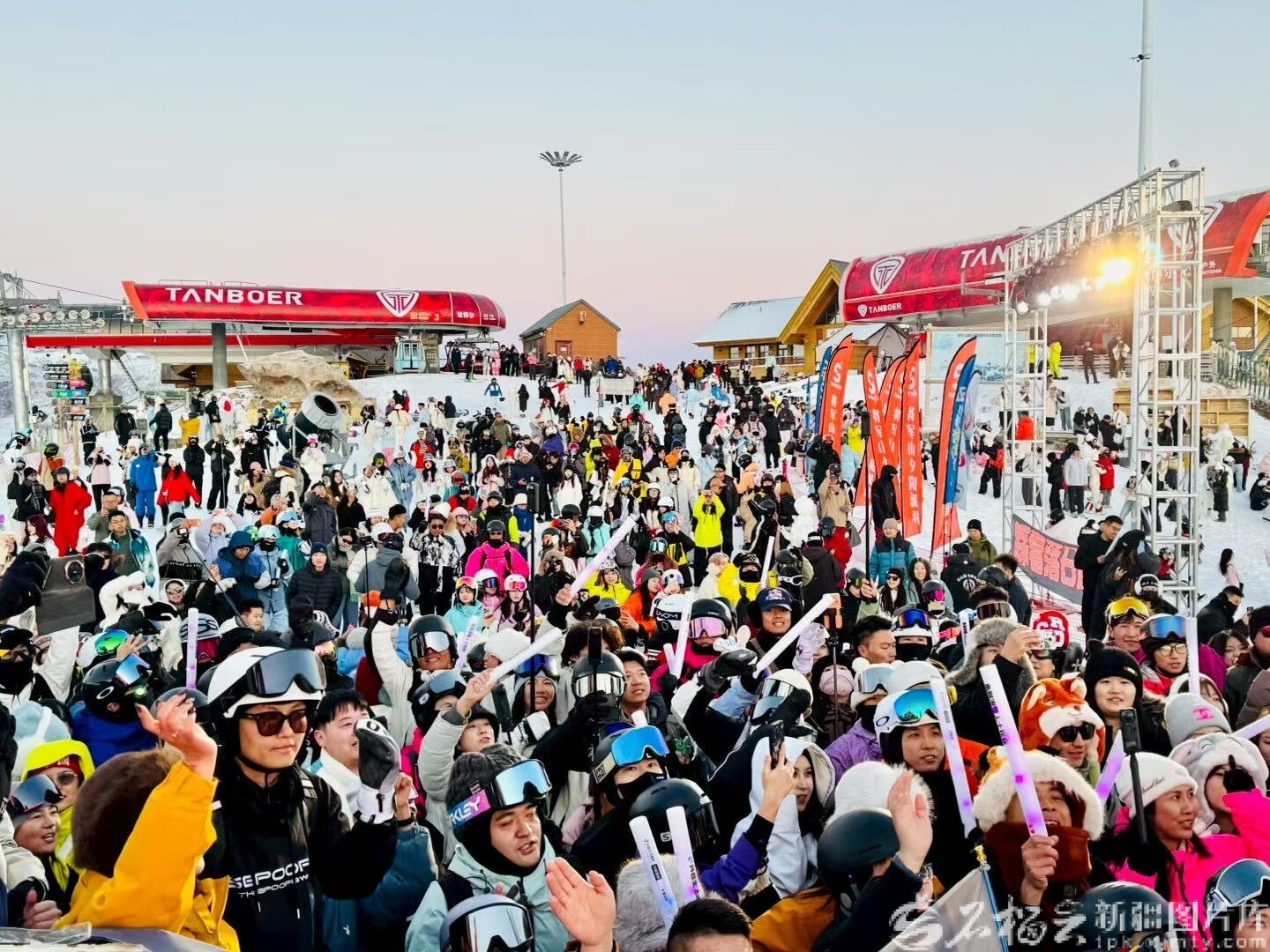 将军山国际滑雪度假区热闹的夕阳派对。陈阳摄