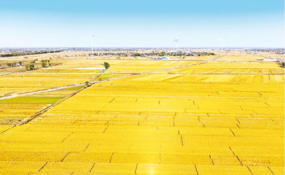 近日,河南濮阳范县18万亩水稻进入成熟收割期,一望无际的稻田在阳光的照耀下散发着金色光芒,沉甸甸的稻穗微微低垂随风摇曳,不时可以闻到阵阵稻香,一幅金色的丰收画卷徐徐展开。