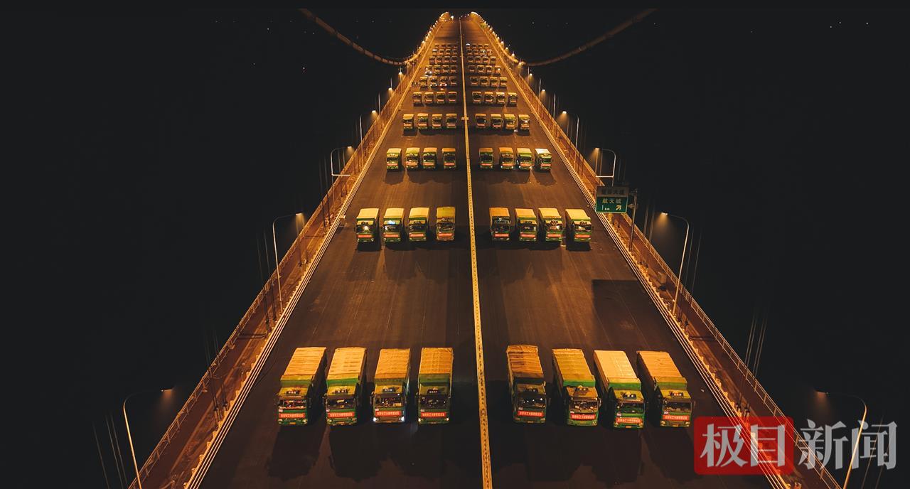 本次长江大桥荷载试验从12月18日晚正式开始,共历时4天。针对双柳长江大桥悬索结构柔性大、跨度长、受力复杂的特点,中铁大桥科学研究院组建了由总指挥组、技术指导组、加载指挥组等十大专项小组构成的74人专业团队,精心设计了多维度测试方案统筹调度试验全过程。现场调配128辆重载卡车模拟实际通行荷载,单次最大加载重量达4480吨,相当于3000辆小汽车的总重量,最大限度还原桥梁极端受力状态,精准捕捉结构真实响应。