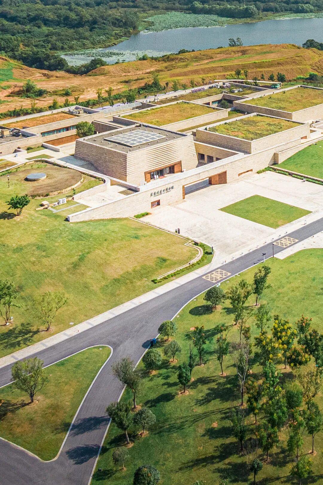 公园占地约4.86平方公里,其西部的遗址博物馆以卡其色砖瓦为主色调,营造出浓郁的秋日氛围。今年新增的“长江水”镜面景观更成为游客热门打卡地——不锈钢打造的蜿蜒水纹铺满阶梯,如流动丝绸般灵动,与古老遗址形成跨越时空的对话,展现出历史与现代交融的独特美感。