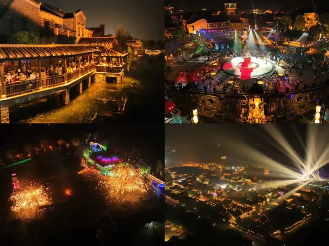 夜场光影秀、烟花秀、荧光巡游满载跨年氛围