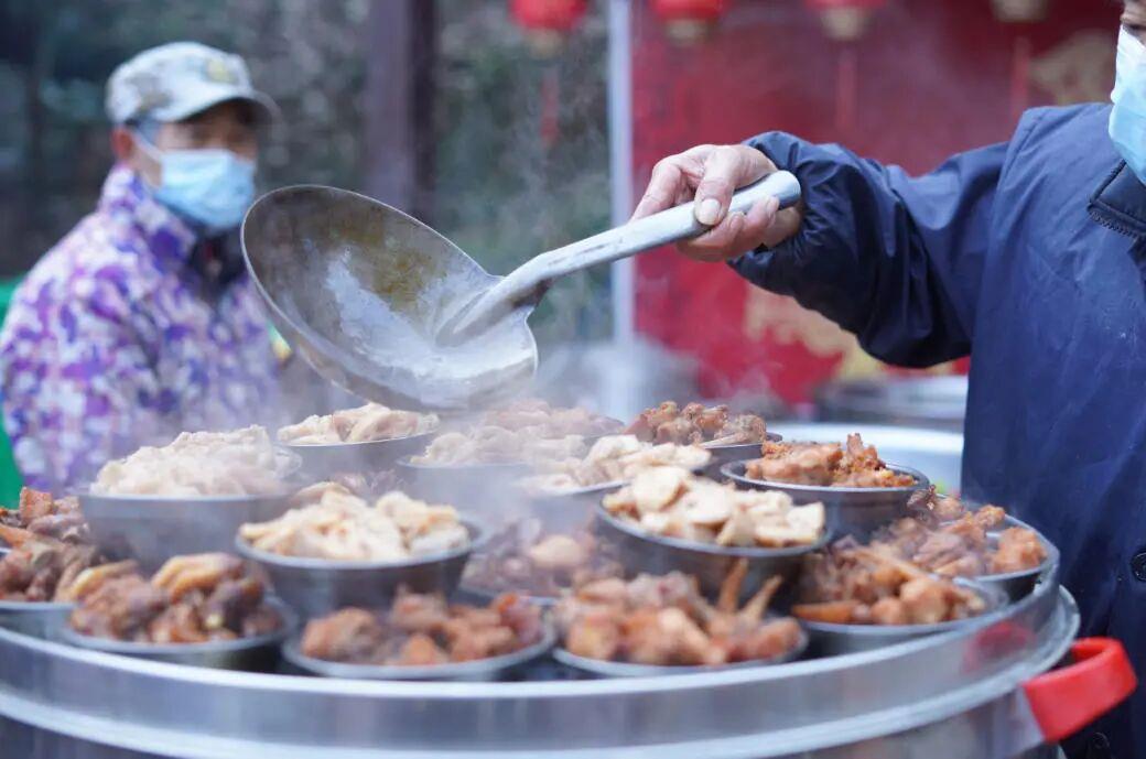 作为这场盛宴的核心亮点,百桌村宴齐开的场面堪称震撼!整齐排列的宴席座无虚席,襄阳风味轮番登场,用极致美味诠释“开席”的诚意与排场!襄阳八大碗悉数亮相,蒸圆子圆润饱满寓意团圆美满,蒸方肉色泽油亮象征富足安康,蒸鱼块鲜嫩入味尽显汉江鲜韵,每一道菜都是老襄阳的烟火本味,更是对新年的美好期许!