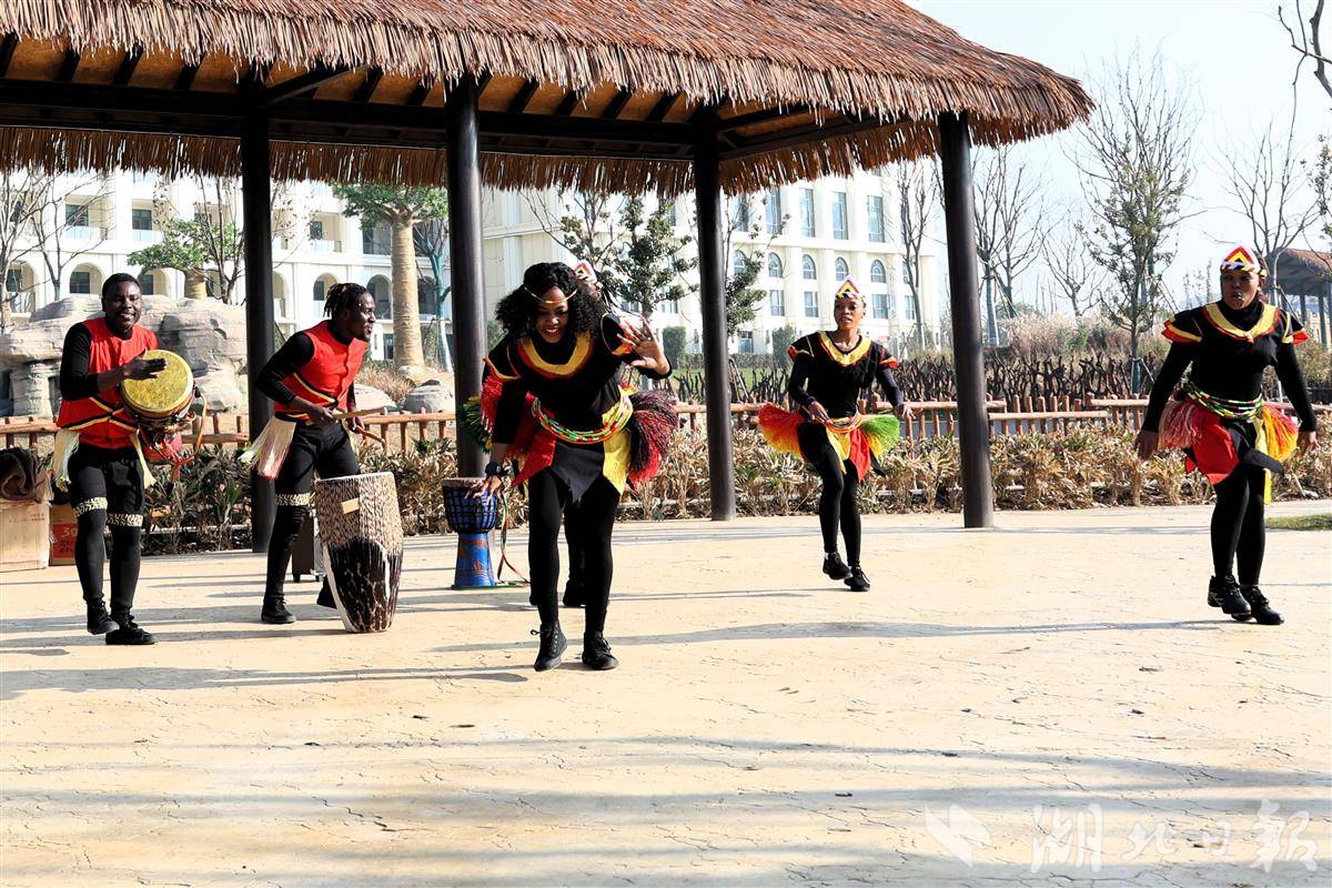 鄂州园博园开园,非洲展区舞蹈引人驻足。湖北日报全媒记者周鹏摄