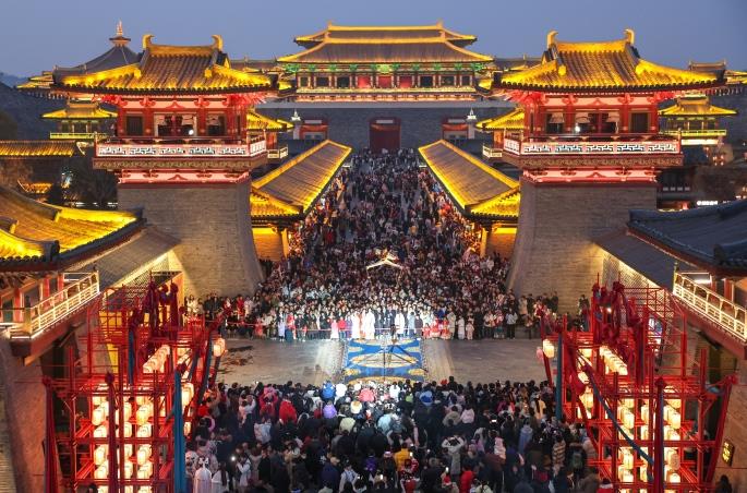 历史文脉与沉浸体验碰撞出独特魅力。古隆中景区推出“遇见诸葛亮・隆中村宴”,以“千桌宴席+水上三国实景演艺”模式,将襄阳美食与三国文化深度融合;盛世唐城开启NPC沉浸式选拔赛与“银票江湖”剧游,各类票务套餐吸引游客穿越盛唐;春秋寨景区打造登高祈福、关公赐福演绎等活动,拓印年画、投壶纳财等互动体验让传统文化可感可触。楚皇城遗址公园、宋玉辞赋园等景点同步开放,让游客在“穿越式”体验中探寻千年文脉。