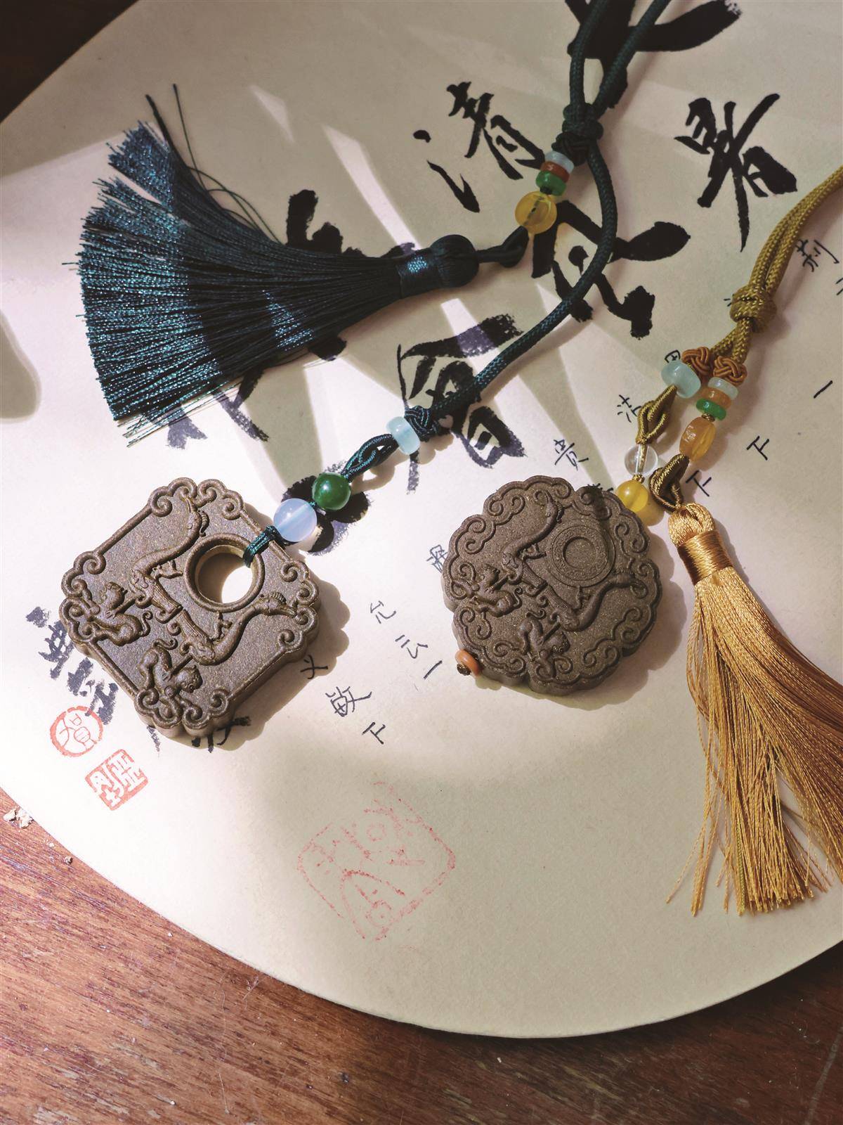 在申报的非遗项目中,多款精品力作令人瞩目。袁嘉骐耗时三年创作的巨型绿松石玉雕《武当朝圣图》,充分保持原石形态完整,因材施艺,琢疵剔瘕,正阳面87位仙道游山朝圣的造型雍容华贵,尽显仙风道骨,刀斧琢迹中透“吴带当风”之神韵,展现了绿松石雕的精湛技艺。崔明凡制作的《福禄寿》《步步生莲》等襄阳香包系列,以精巧手工绣制吉祥纹样,内填芳香药草,既是荆楚民俗文化的精美载体,承载着祈福纳祥的美好期许,也传递着驱邪避秽的民俗寓意。此外,刘洁的武汉面塑《昭君出塞》、韩雪的楚香制作技艺《楚香袅袅 凤鸣九天》香牌系列、姜成国的汉绣挂屏《越王勾践剑》等作品,或展现动人故事,或融合传统与现代工艺,或彰显古老技艺与时代美感的碰撞,无不彰显着湖北非遗的深厚底蕴与创新活力。