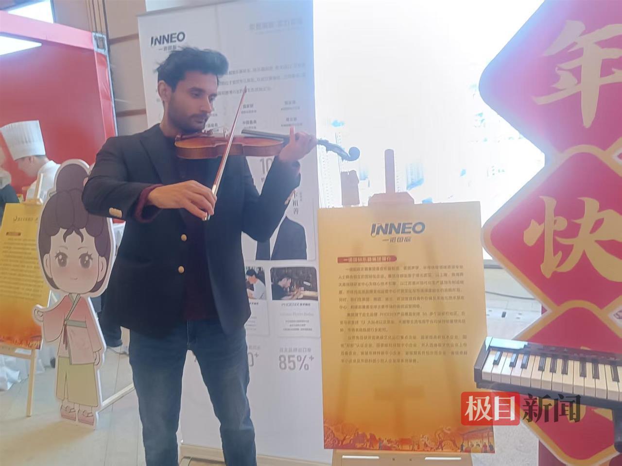 湖北省博物馆展位前,一字摆开四把小巧玲珑的小提琴,吸引了不少市民的目光。许多人以为这是玩具,直到27岁的巴基斯坦小伙李乘风操起一把小提琴演奏起来,才知道是真乐器。