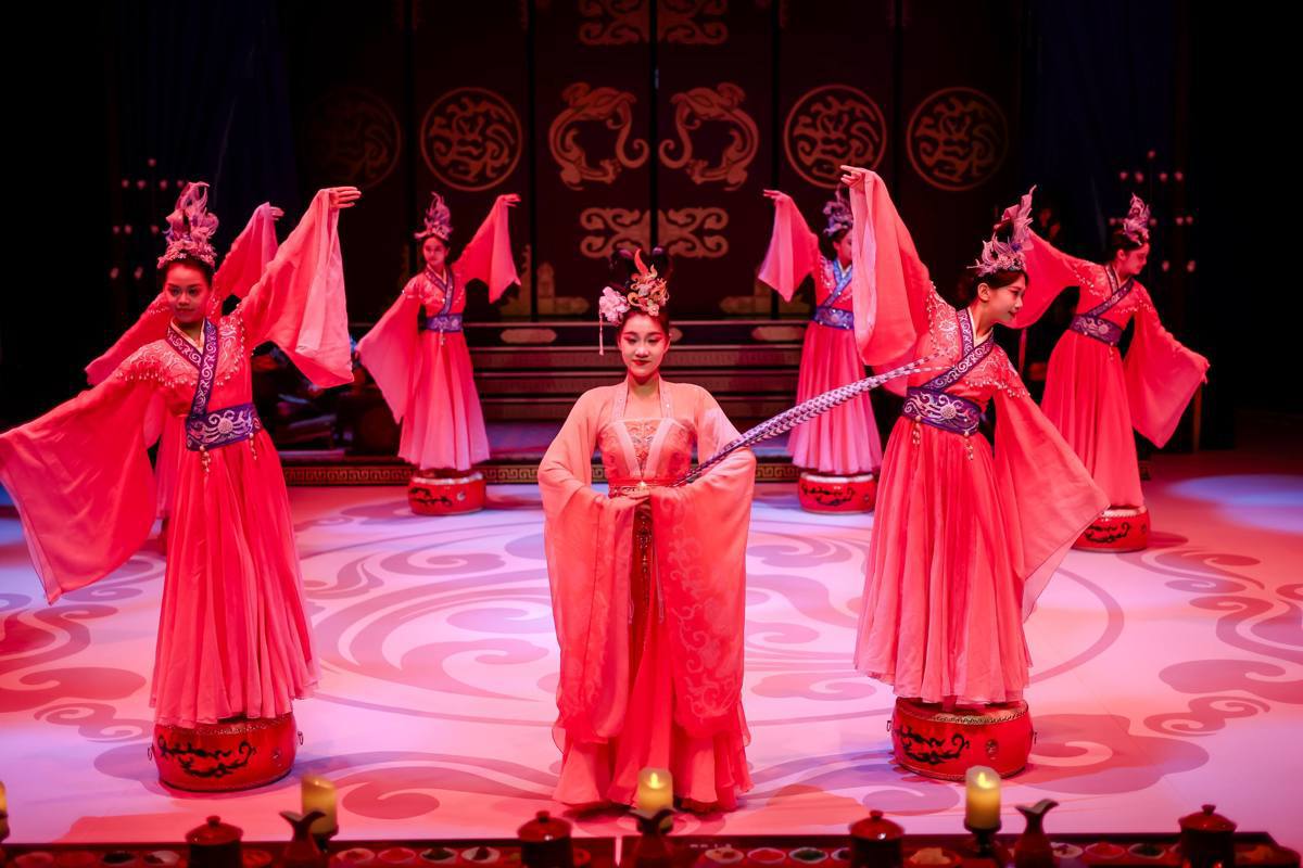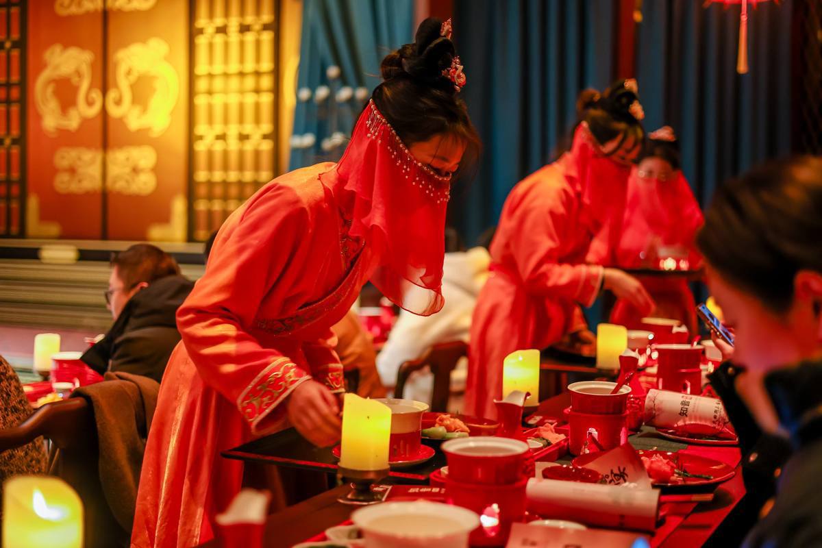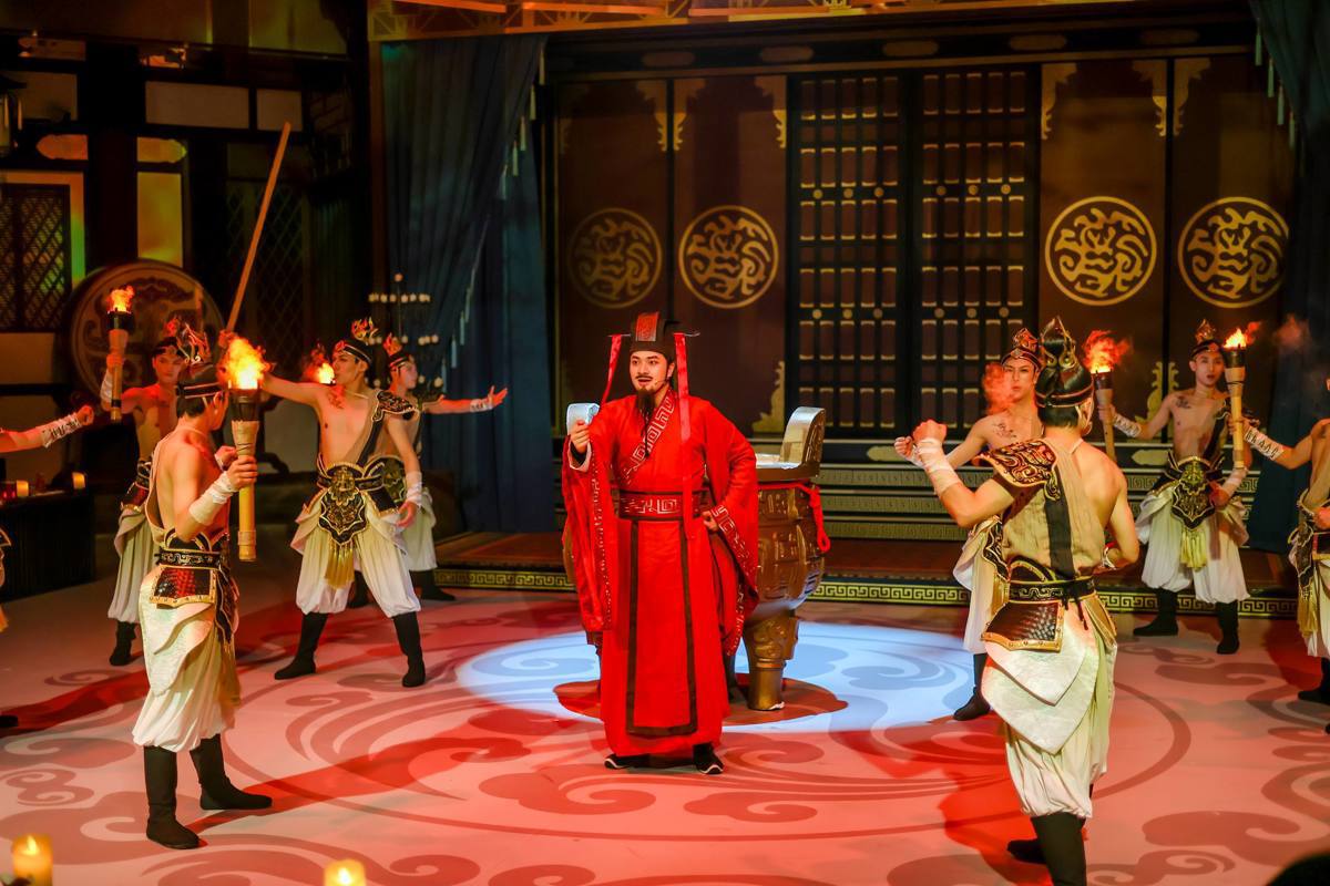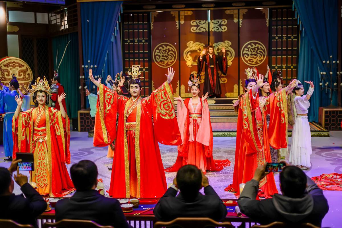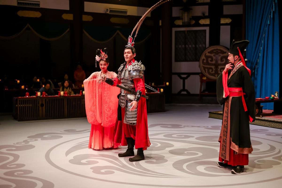与此同时,一层沉浸式剧游空间正持续开放预约。核心项目“三国群芳宴”以三国文化为核心,打造涵盖剧情互动、主题舞剧与荆楚美食品鉴的沉浸式餐秀体验。游客通过“知音文化旅游区”小程序预约后,可换装进入场景,与张飞、黄月英、华佗等NPC互动,参与三国市集逛游、游戏解谜等环节。每日17:30起,五幕主题舞剧依次上演,融合《洛神赋》、鱼灯舞等经典舞段,每段演出后更配有鱼糕、黄陂三鲜等对应主题的楚菜美食品鉴,全程约2小时,让游客在味觉与视觉中穿越千年。