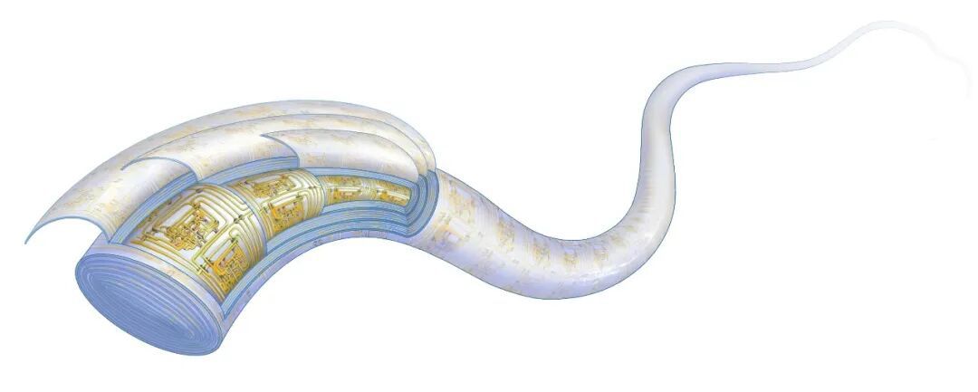 1月22日凌晨,复旦大学纤维电子材料与器件研究院、高分子科学系彭慧胜/陈培宁团队相关研究成果发表于《自然》(Nature)主刊。该团队突破传统芯片集成电路硅基研究范式,率先通过设计多层旋叠架构,在弹性高分子纤维内实现了大规模集成电路,标志着“纤维芯片”从概念变为现实,我国原始创新和关键核心技术攻关获得重要进展。