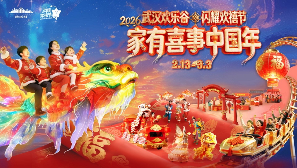 过年倒计时!武汉欢乐谷闪耀欢禧节春节特别活动家有喜事篇即将于2月13日盛大开启,届时将推出“家有喜事中国年”系列年味项目——看飞天鳌鱼,步步高升;闯年味小镇,让您八方来财;逛四大喜事现场,阖家团圆;赏千灯祈福,红运连连!更有全新设备“飓风时刻”开运首发,带你一起马到成功。