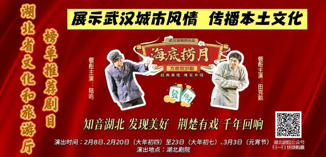 重温经典、共享欢乐。被誉为“武汉版《茶馆》”的方言贺岁喜剧《海底捞月》,将于2026年2月8日起至春节期间在湖北剧院连演七场,用地道的汉派风情为市民送上新春祝福。
