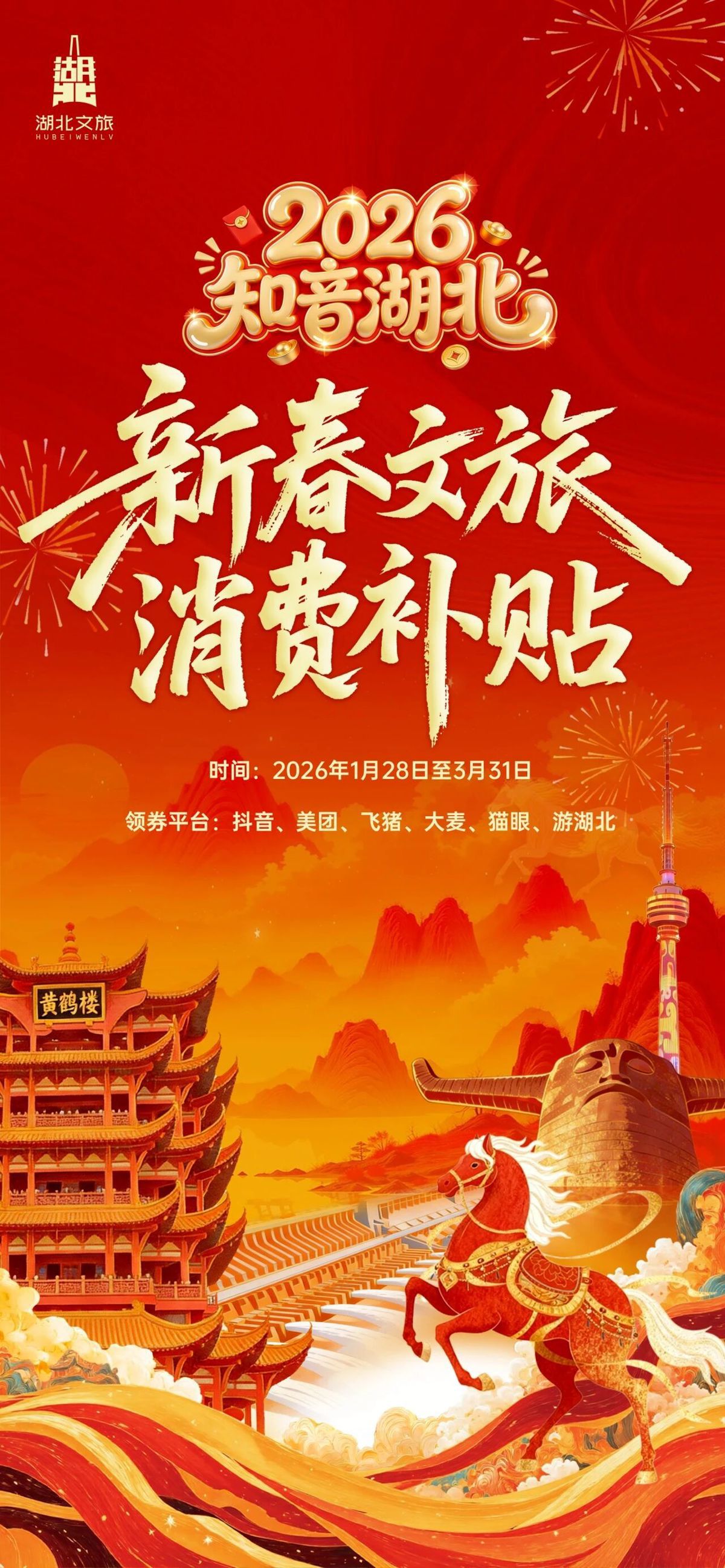 新闻记者从湖北省文化和旅游厅获悉,2月4日10:00,第二轮6000万元“知音湖北”新春文旅消费补贴即将开领。本轮核销时间延长至2月28日(正月十二),市民游客可先抢了补贴囤着,过年期间安心畅游荆楚。