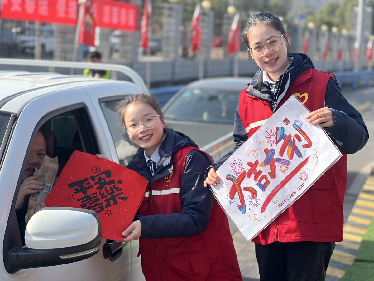 春运期间,该公司各收费站口的“爱心小屋”将24小时全天开放,为司乘提供临时休息、如厕等服务。此外,还增设“春运服务台”,免费供应热水、应急食品、WiFi、充电设备、外用药品及维修工具。不仅如此,收费站通过布置花卉、悬挂风车灯笼等方式营造喜庆的节日氛围,并向司乘赠送车贴福字、福袋等小礼品,致力于打造平安、便捷、温馨的春运旅途。