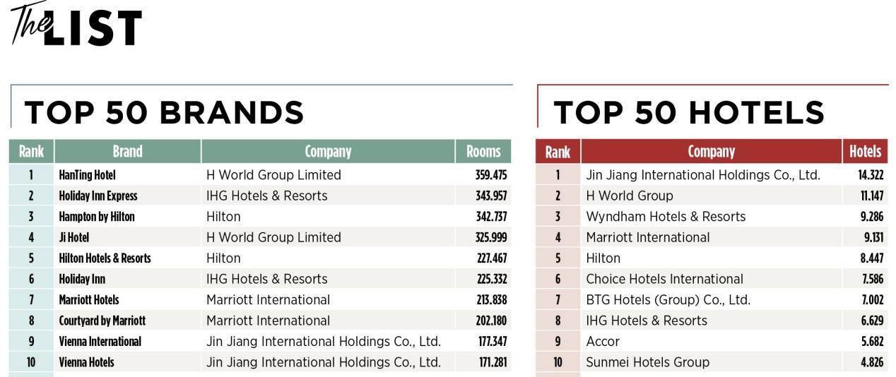 2025年,《HOTELS》杂志榜单显示,汉庭以359,475间客房,成为全球单一酒店品牌规模第一。