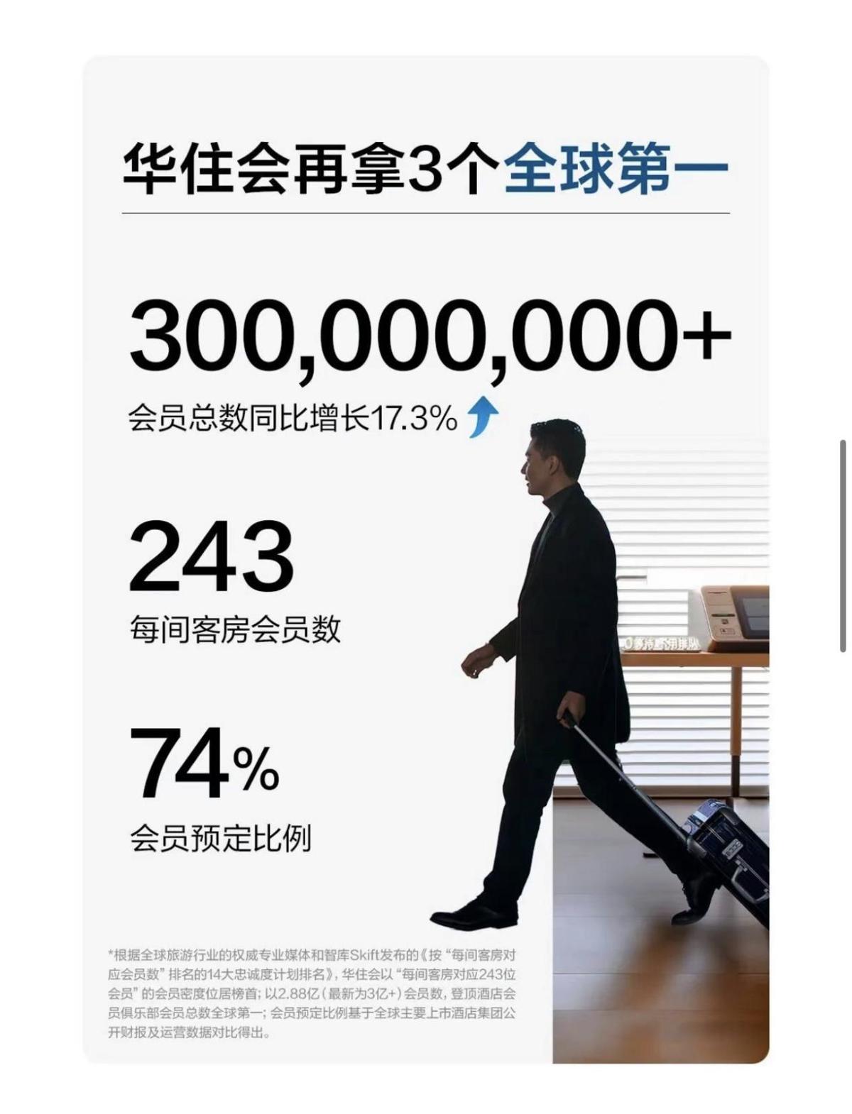 华住会会员总数突破3亿,登顶酒店业全球第一