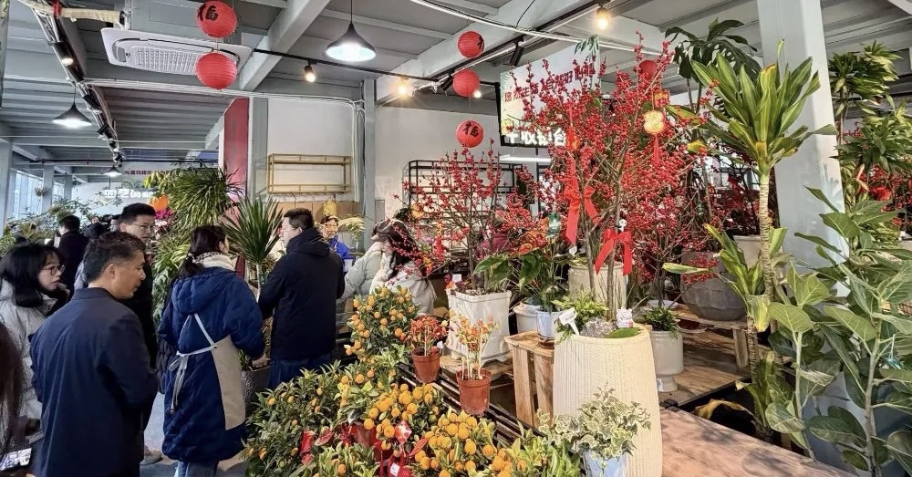 本届花市以“多元融合、品质提升”为核心理念,不断丰富业态与产品供给,为市民游客带来全新的消费体验。核心区的“花漾市集”汇聚了多家优质花卉商户,部分大型门店还贴心地提供园艺教学、水族体验等增值服务,让市民在购花的同时,还能学到实用的园艺知识,提升生活品质。沿丹桂路布局的三大特色展区同样亮点纷呈,迎春花市区引入了多款新品花卉,让人眼前一亮;年味烟火区与特色小吃区则汇集了各类年货与本土农副产品,华为、煌上煌、洪都大拇指等知名品牌纷纷入驻,进一步丰富了花市的商品种类,构建了“园艺 + 生活”的消费矩阵,满足了市民游客多样化的消费需求。