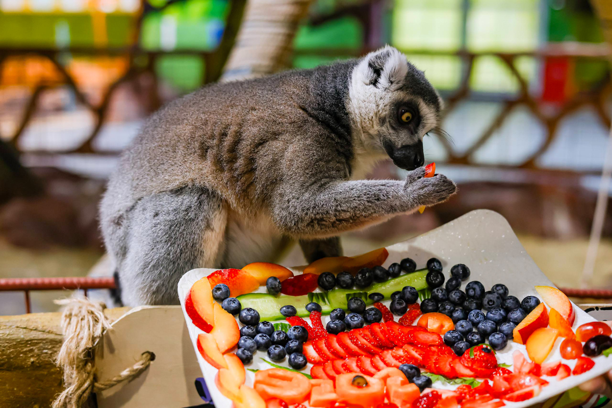 马年新春,度假区的10w+海洋萌宝已化身“新春主角”,迎接游客到来。在动物饲养区,记者看到工作人员已为鹈鹕、小熊猫、卡皮巴拉、环尾狐猴、白鲸、企鹅等明星萌宠备好专属年夜饭,新鲜的鱼虾与果蔬整齐摆放,春节期间,游客可近距离观赏萌宠干饭的可爱瞬间,与萌宝们一同过大年。