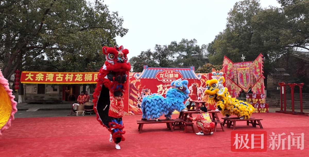“在舞狮节目中,我主要负责舞狮梅花桩、舞狮八仙凳等表演,每天有四场演出,一直持续到3月5日。”大余湾古村龙狮队队员陈奇向新闻记者介绍道。