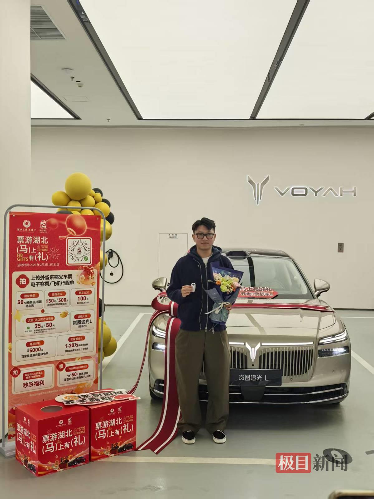 谭超逸介绍,自己这次回武汉过年,顺便邀请朋友来汉游览了黄鹤楼等景区。从网上获悉湖北文旅“票游湖北 ‘马’上有礼”活动后,抱着试一试的心态,通过小程序上传了景区门票和其它消费凭证,随后也没把这事放在心上,但是全家人也都时常关注小程序动态。前两天,谭超逸的妹妹发现小程序首页公布的中奖名单中,有位姓谭的中奖者电话尾号跟哥哥的一样,就告诉了他。“我开始不敢相信自己会这么幸运,直到工作人员打电话向我道贺,我心里还怦怦直跳。”谭超逸说,自己对家乡的岚图汽车一直很关注,对这款岚图追光L的性能早有了解,一直心心念念。“没想到真的中了奖,真是太幸运了!感谢湖北文旅,感谢岚图!”他表示,春节期间准备开上这辆新车,带着家人去咸宁泡温泉,去黄陂滑雪。一年使用期间到期后,如果开顺了手,也愿意买下这辆车,毕竟这辆车给自己全家带来了新年好运。