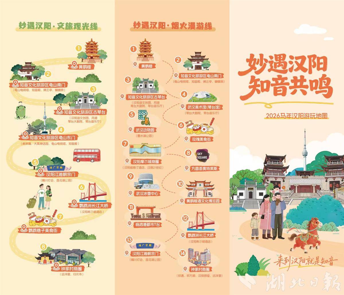 这条游线上,不论蛇山上的“顶流打卡地”黄鹤楼,龟山脚下延续千年知音文脉的古琴台,还是“万里长江第一桥”武汉长江大桥、“亚洲桅杆”龟山电视塔,哪一个不是“一眼武汉”的地标狠角色?