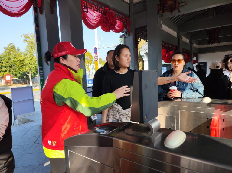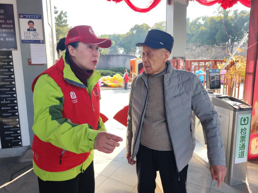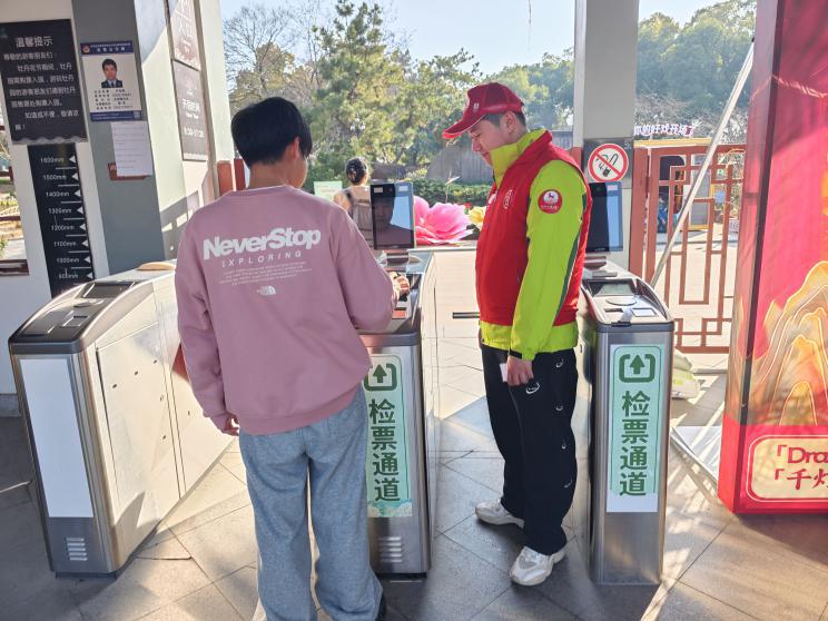 上午9时,东湖牡丹园入口处游人熙熙攘攘。志愿者身穿统一的红马甲,在检票口耐心地指导游客购买对应身份的门票。“这么小的宝宝入园不需要买票哦!”“您的孩子可以购买学生票,和儿童票的价格一样。”“您超过65岁了可以免票。”……他们仔细核对入园信息,熟练地引导游客,确保大家都能快速有序入园。