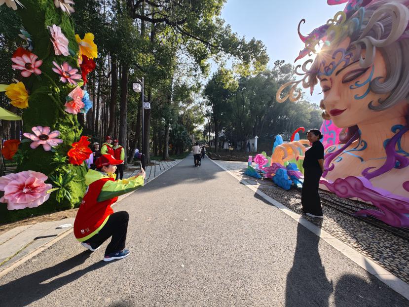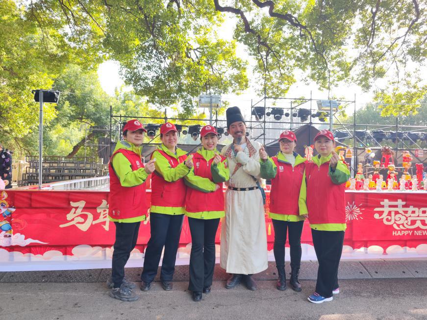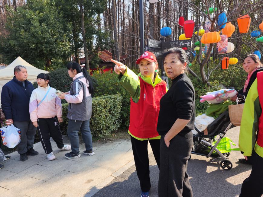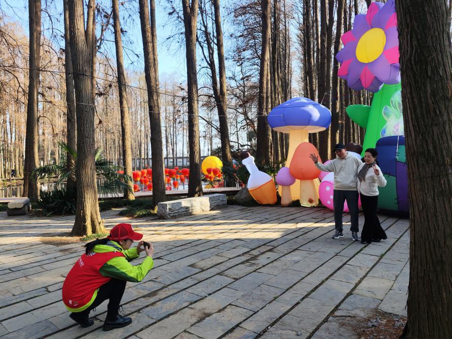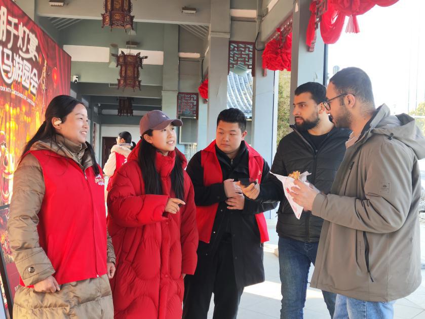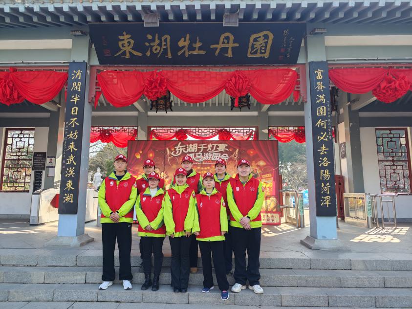 2026年春节假期,武汉东湖牡丹园年味正浓,一年一度的东湖灯会在此举办,不少市民游客前来游园迎新春。一群武汉文旅志愿者坚守在景区大门,从早到晚,穿梭在人群之中,用贴心、热情的服务,为新春佳节增添了一份暖意。