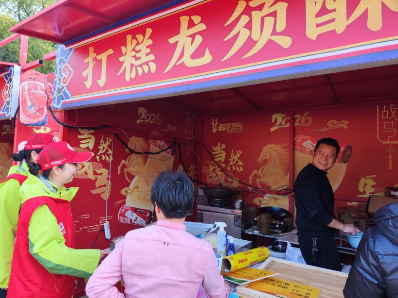 “老板,今天生意不错吧?”志愿者王岚笑盈盈地走到商户摊位前打招呼,叮嘱摊主“用火不离人,收摊记得关电关气,安全第一呀”。遇到忙着备货的商户,她还会多叮嘱两遍,确认摊主听进去了才离开。