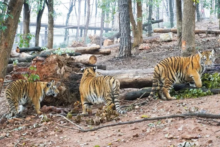作为园区春节扩容升级的核心项目,“明知山”虎园依托乌梅山自然山体地形建设,依山而建的环山步道与数十米长全景玻璃隧道,让游客观赏路线与东北虎活动区域实现立体交错。在安全防护到位的前提下,游客可通过仰视视角,近距离观赏百兽之王在山林间漫步、巡山、嬉戏的原生姿态,沉浸式感受“明知山有虎,偏向虎山行”的独特体验,不少摄影爱好者专程占据观景制高点,定格东北虎威风凛凛的精彩瞬间。