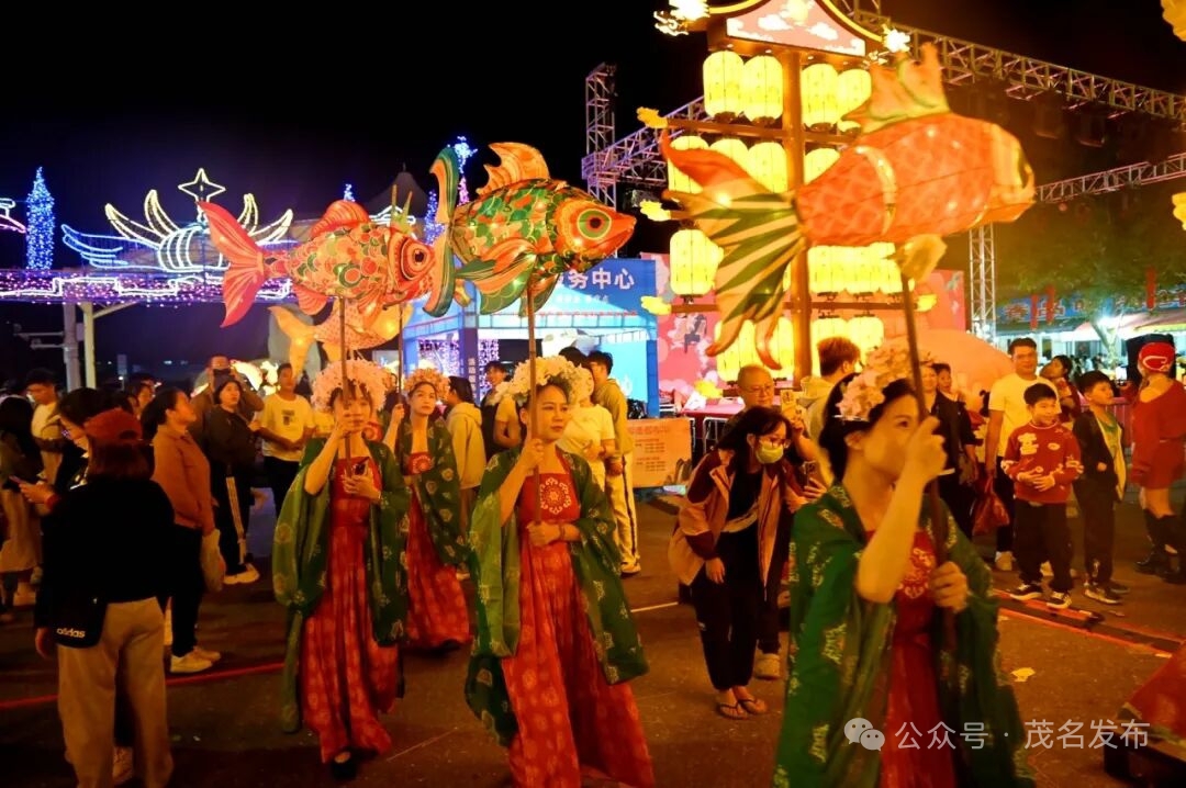 非遗鱼灯舞、古风舞蹈、魔术秀等节目轮番上演,在福禄寿三仙的引领下,非遗鱼灯巡游光影流转、韵味十足;舞台之上,演员踏歌起舞,传统民俗与现代节庆氛围相融,为游客带来沉浸式体验。