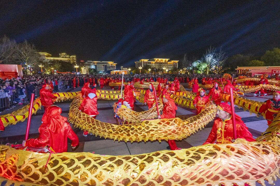 活动在一场庄重而又喜庆的龙灯点睛仪式中拉开序幕。作为黄石最具代表性的民俗瑰宝,王贵武龙灯已有300多年历史。此次亮相的龙灯由一大两小三条巨龙组成,总长超350米、105节,三百余名参演队员配合龙门、龙牌、戏珠及锣鼓、牌子锣队,演绎出蛟龙出海、盘旋腾飞的震撼画面。其以竹篾为骨、皮纸为身、桐油为甲的古法制作工艺,历经三十多道工序、耗时月余打造,让现场观众沉浸式感受传统非遗的匠心与魅力。