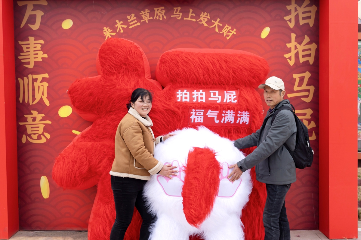 景区还精心设置了“拍马屁”“财神位”等特色打卡点,游客们排着队拍照留念,定格新春美好瞬间。