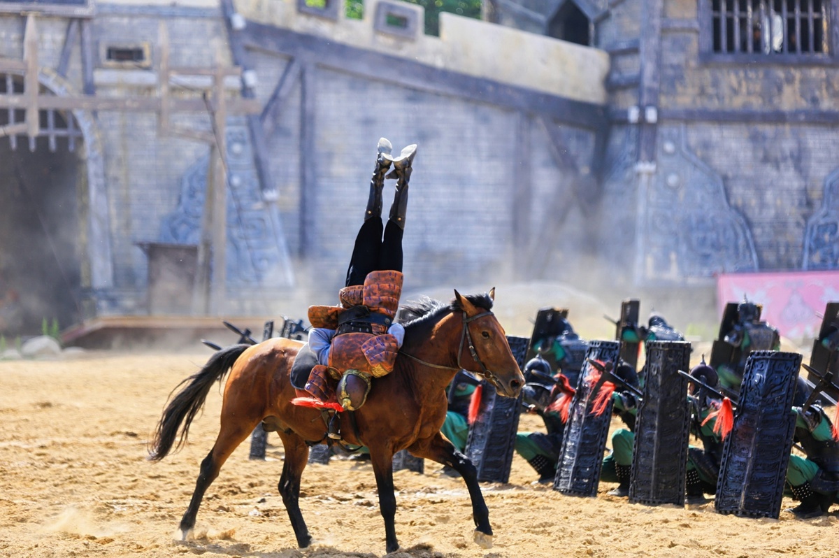 肚皮碗、顶缸、云端走钢丝等杂技表演同样掌声不断。表演者凭借娴熟技艺,将惊险与柔美完美融合,每一个高难度动作都让人屏住呼吸、拍手叫绝。