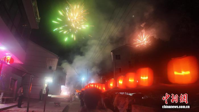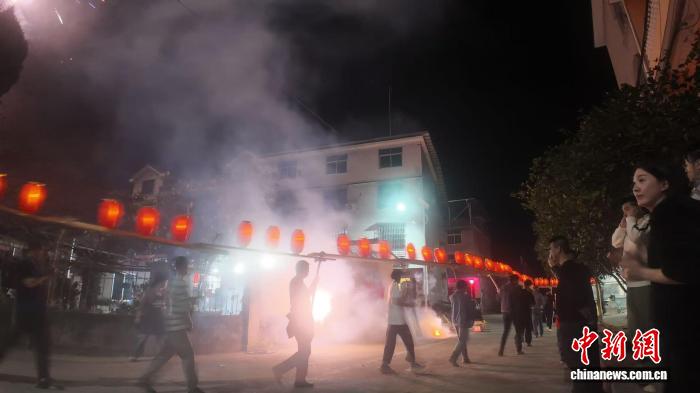 中新网南平2月23日电(张丽君 李子涵 李鹏磊)正月初七晚,福建省南平市顺昌县大历镇田后村传统民俗游烛桥活动热闹上演,流光溢彩的灯火点亮乡村夜色,村民与游客共庆新春佳节。