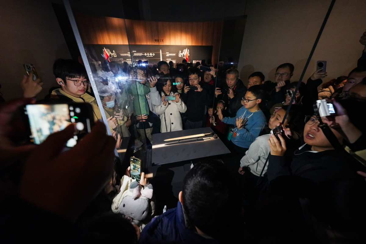 虽然排队看剑的人群仍然排成“长龙”,但据早上开馆第一波排队的游客介绍,“排队时间不长,十分钟左右可以入场。”新闻记者于9:35-10:00在这里看到,现场情形与游客所述相吻合。