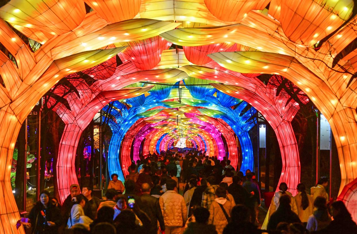 2月19日,游客在河南省洛阳市隋唐城遗址植物园欣赏“神都上元灯会”主题特色灯展。新华社发(李卫超 摄) 文旅消费旺。春节前夕,2026年全国春节文化和旅游消费月活动火热启动,各地集中发放消费券、专项补贴等,推动文旅市场购销两旺。“惠民范儿”带动消费潮,飞猪数据显示,春节假期国内游订单量再创新高,其中门票订单量同比增长超80%,酒店间夜量同比增长75%,国内游人均预订金额较去年提升约10%。