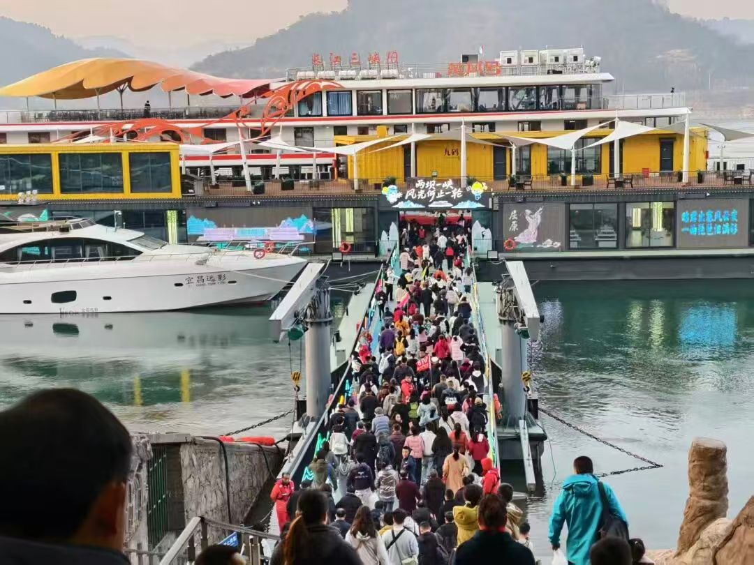 春节假期,宜昌多个重点景区仍是承载游客的核心主力。其中,三峡大坝连续7天游客爆满,同比增长超54.2%;三峡人家接待量创历史新高,旅游接待人次和收入均增长超50%;清江画廊单日接待量突破1万人次;“两坝一峡”游船连续5天船票售罄;长江夜游同比增长超140%;三峡千古情最高一天连演6场……