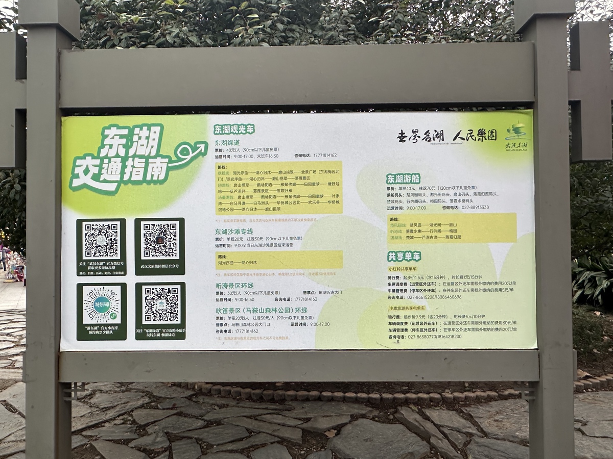 在东湖绿道的主要入口处,一块新设立的“东湖交通指南”和“东湖保姆级主题游线路”展板前围满了游客,成为现场人气最旺的“景点”之一。大家或仰头细看,或拿出手机拍照,还有人拿着小本本认真地记录着。