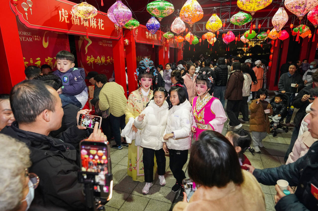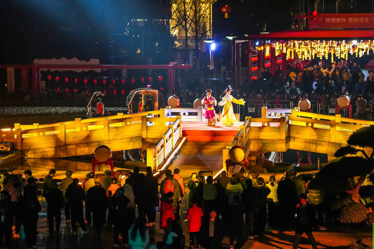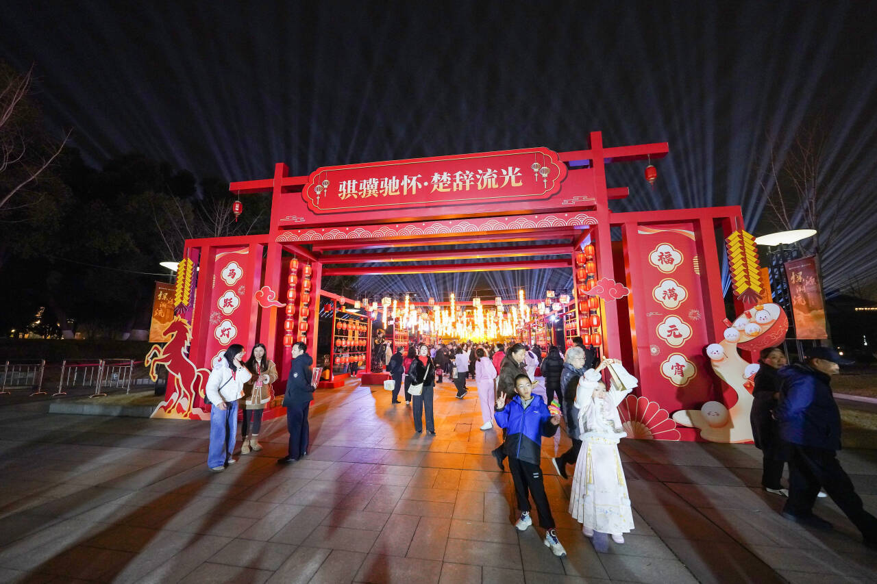 3月3日晚,由湖北省文化和旅游厅、湖北省文物局联合主办,湖北省博物馆、湖北省群众艺术馆(湖北省非物质文化遗产保护中心)承办的2026年“钟鸣楚天元宵夜”主题灯会在省博物馆璀璨启幕。现场,灯会上楚辞流光,“楚庄王”“王昭君”“屈原”扮演者都来了,机器人也来凑热闹。中外游客纷纷在灯会上留影。