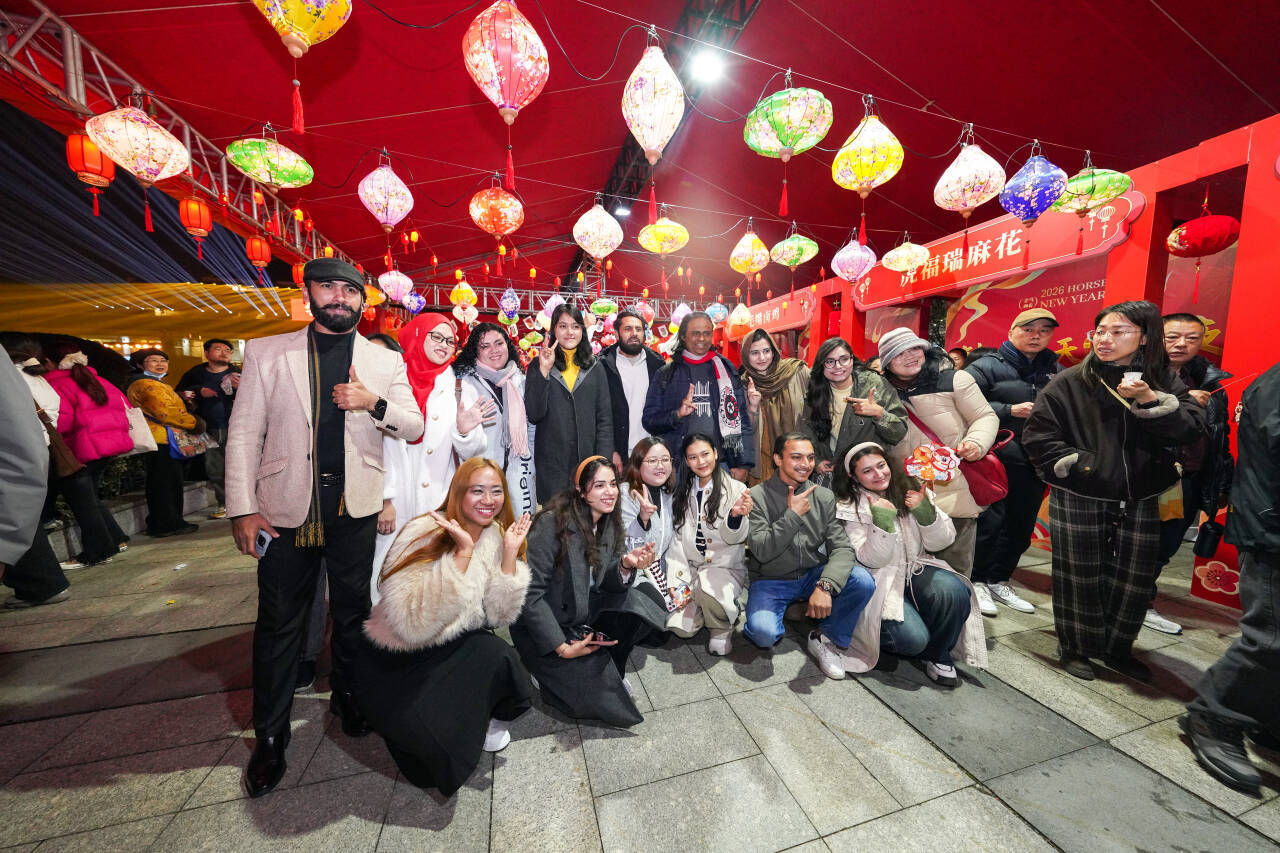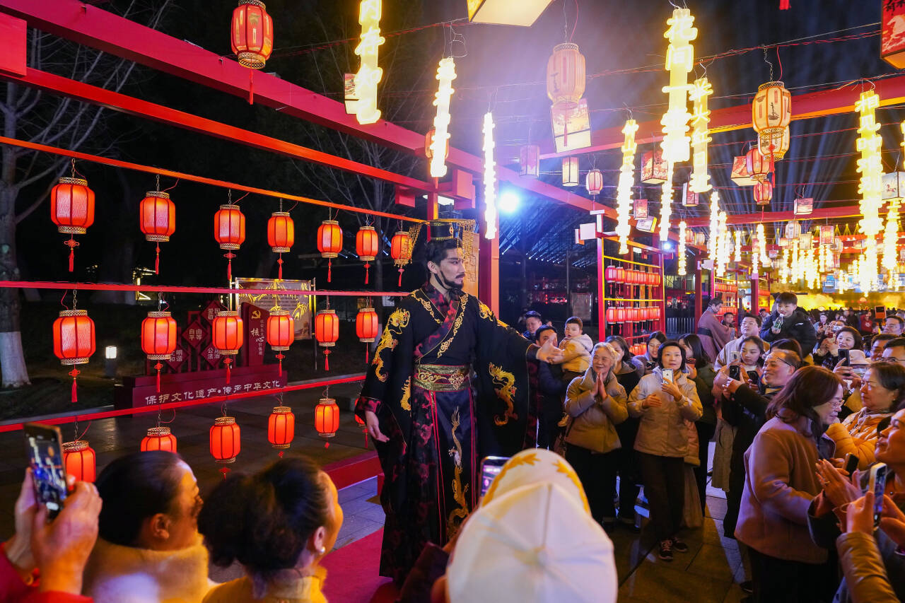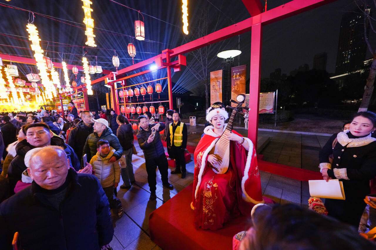 3月3日晚,由湖北省文化和旅游厅、湖北省文物局联合主办,湖北省博物馆、湖北省群众艺术馆(湖北省非物质文化遗产保护中心)承办的2026年“钟鸣楚天元宵夜”主题灯会在省博物馆璀璨启幕。现场,灯会上楚辞流光,“楚庄王”“王昭君”“屈原”扮演者都来了,机器人也来凑热闹。中外游客纷纷在灯会上留影。