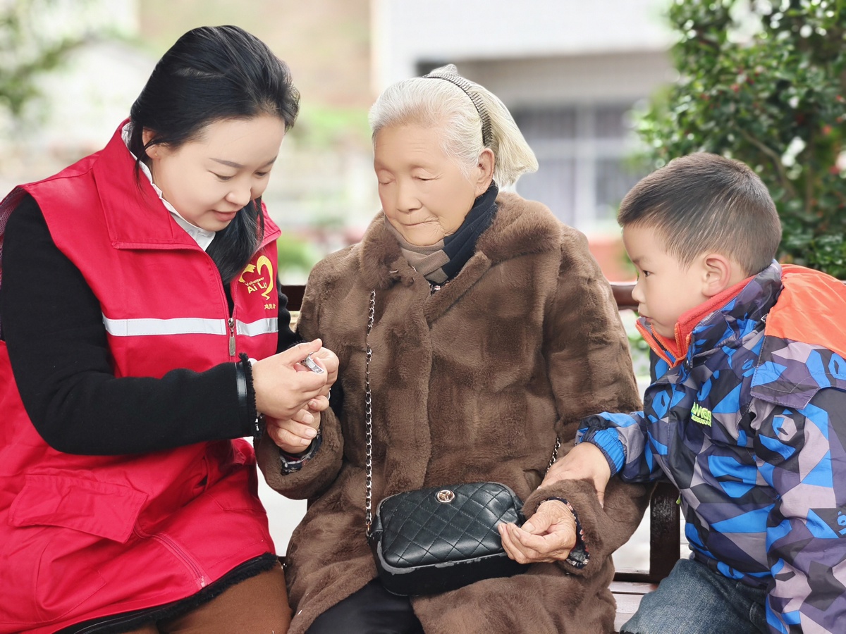 庹昌艳帮台子包村老人剪指甲