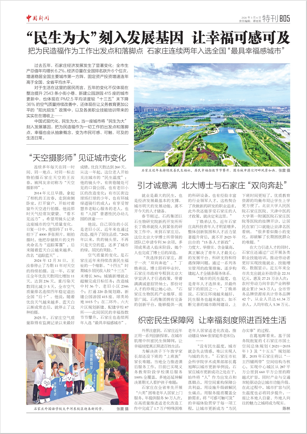空气质量的变化,是石家庄近年来持续改善民生福祉的一个缩影。“十四五”时期城乡居民收入较“十三五”末增长36%;城镇新增就业超额完成目标任务;改造城中村36个、老旧小区2346个;打通220条规划路,新建公园游园415座、球类场地1015个;在二环外、六大片区规划新建、配建学校87所……此间居民的幸福指数节节攀升,石家庄也连续两年入选“最具幸福感城市”。