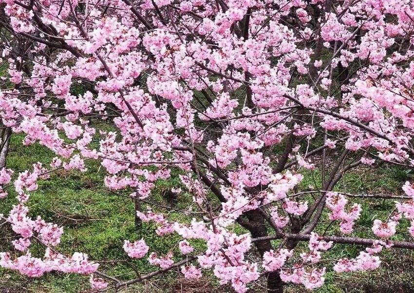 这里汇集了45个樱花品种、4万余株樱花,沿着山间步道织就10公里樱花长廊,“粉红佳人”“染井吉野”等品种竞相绽放,粉白、淡粉的花瓣层层叠叠,漫山遍野都是温柔的粉色光晕。