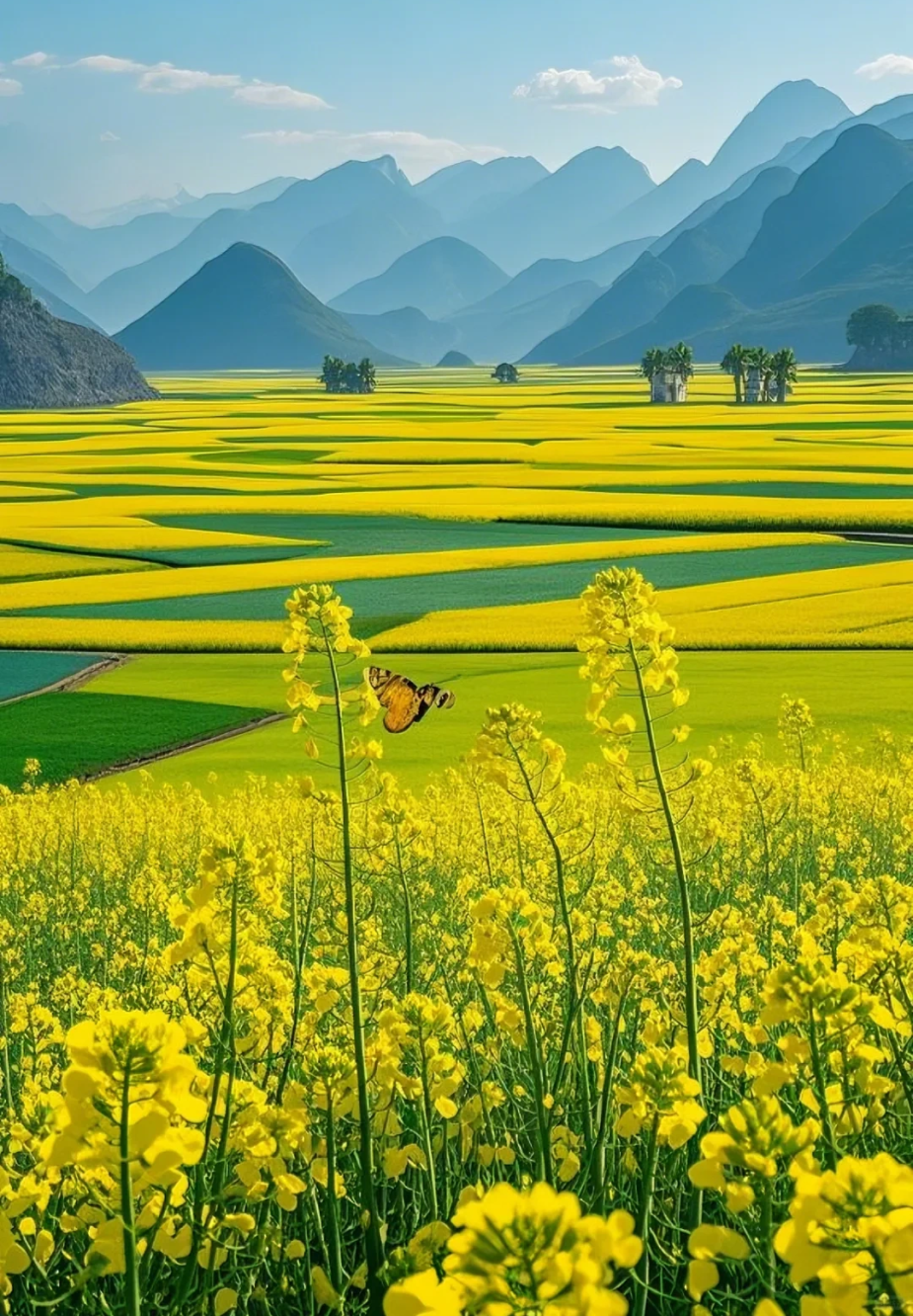 · 襄北油菜花田(春季):剧中青春户外戏拍摄地,花海与远山相映。