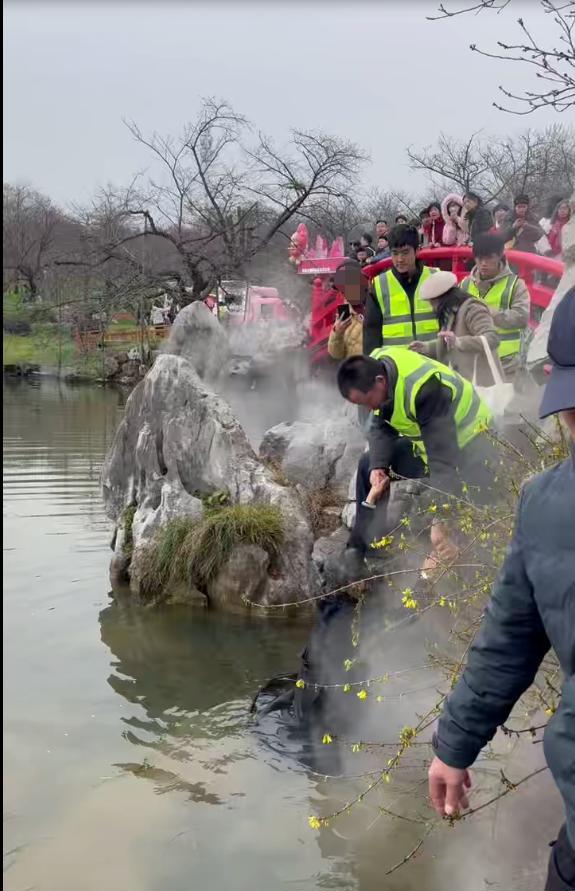 3月8日,一名女士在武汉东湖樱花园内拍照时不慎失足落入湖中,危急时刻,现场多名安保人员迅速出手,不到一分钟便将人成功救起,暖心举动获周围市民游客点赞。