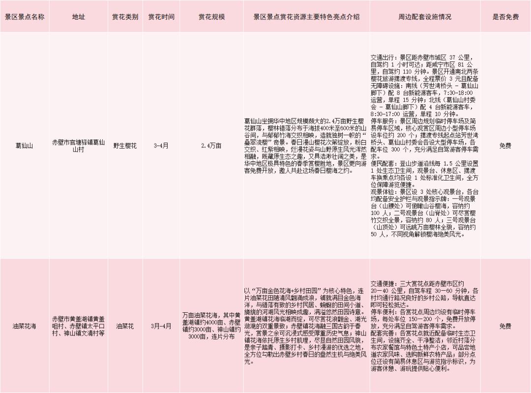 赤壁市赏花游景区景点一览表