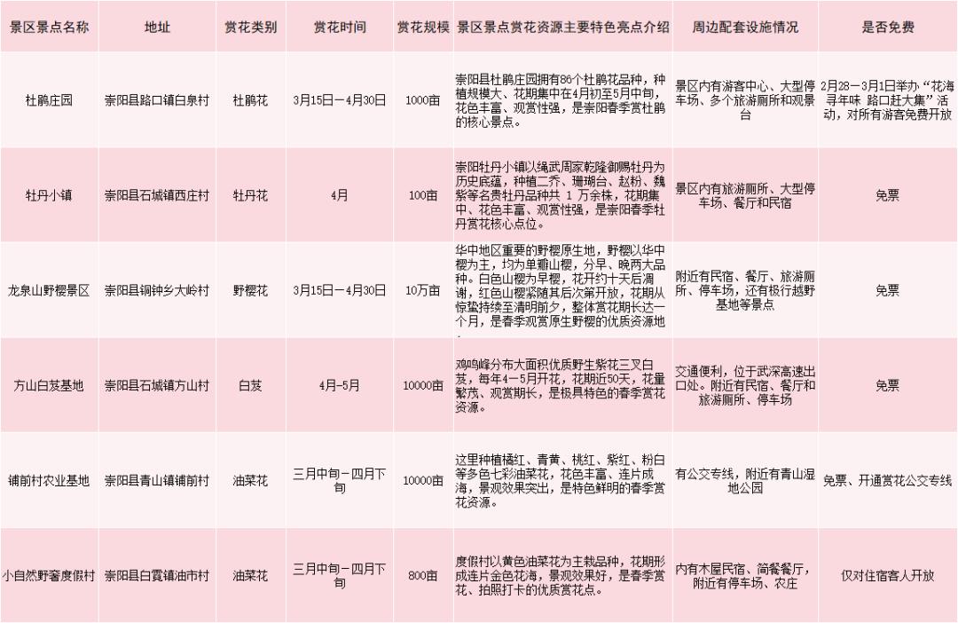 崇阳县赏花游景区景点一览表